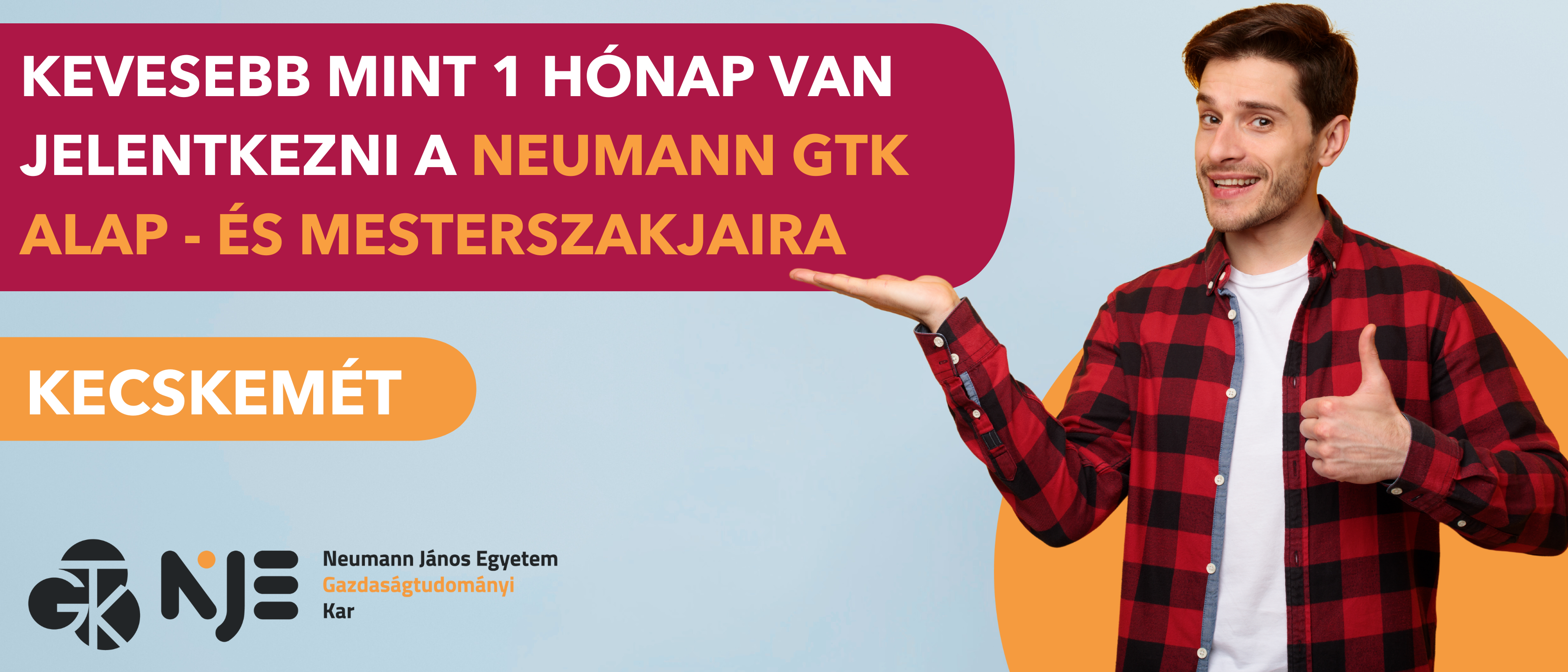 Ha szeretnél biztos tudást, támogató közösséget és versenyképes diplomát, ne halogasd a döntést! Még egy hónap van a jelentkezésig – válaszd a Neumann János Egyetem Gazdaságtudományi Karát, és építsd nálunk a jövődet!